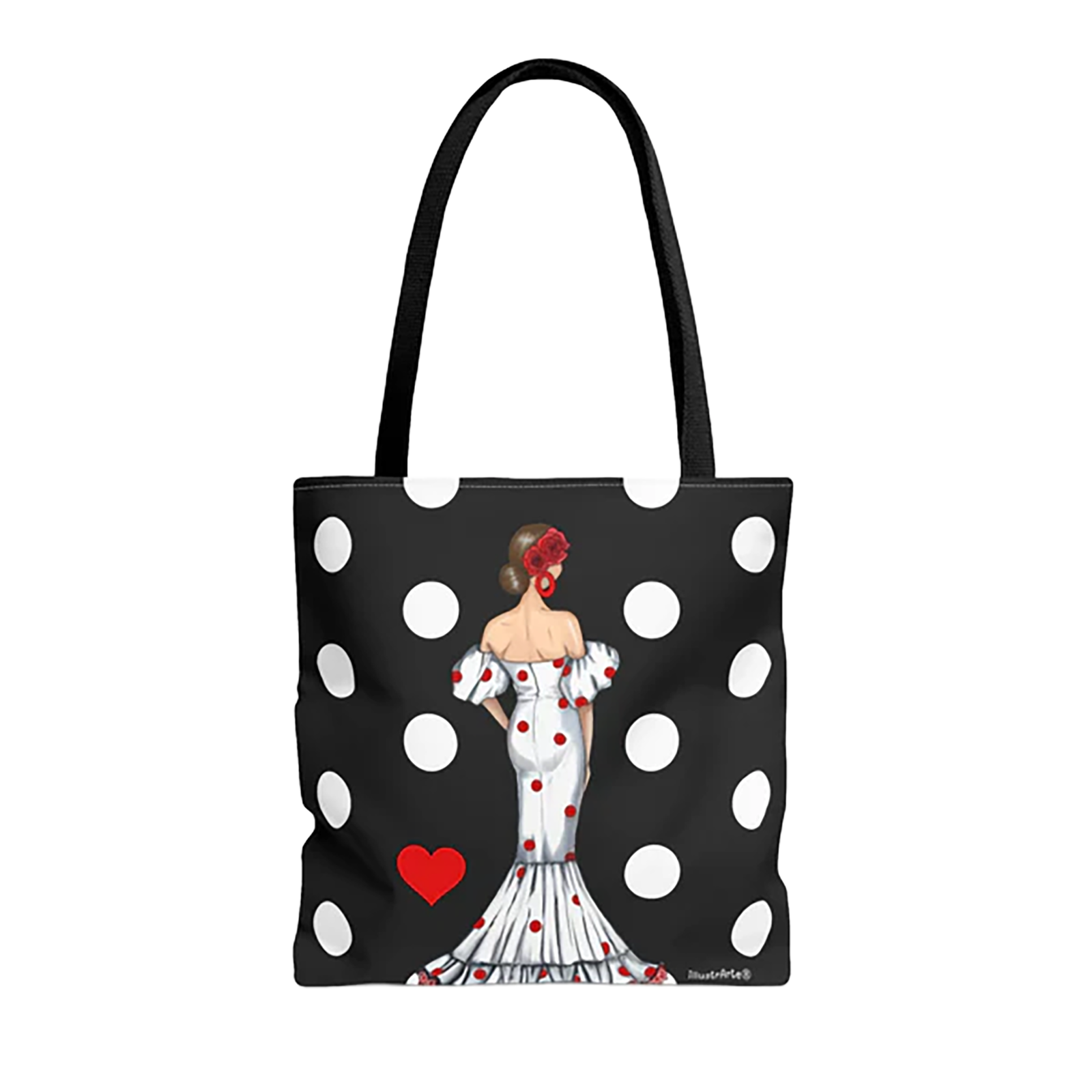 Malaga Tote Bag Flamenco Design „Maite“ mit Polka Dots | 43 x 43 cm | Beidseitiger Druck | 60 cm Griffe | Robuste Einkaufstasche